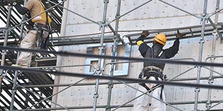ビルや橋梁、倉庫や発電所など、様々な構造物の建設に必要となる、足場・安全設備を設置します。外壁の塗装や補修のための工事にも必要となります。当然足場の解体も含まれます。