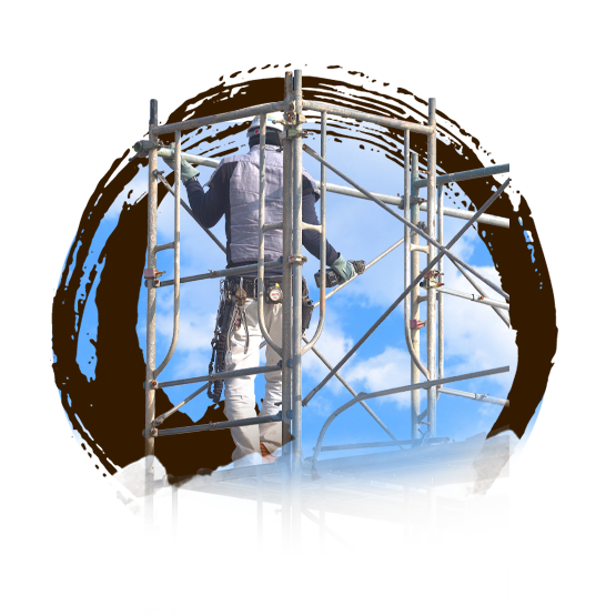 ビルや橋梁、倉庫や発電所など、様々な構造物の建設に必要となる、足場・安全設備を設置します。外壁の塗装や補修のための工事にも必要となります。当然足場の解体も含まれます。